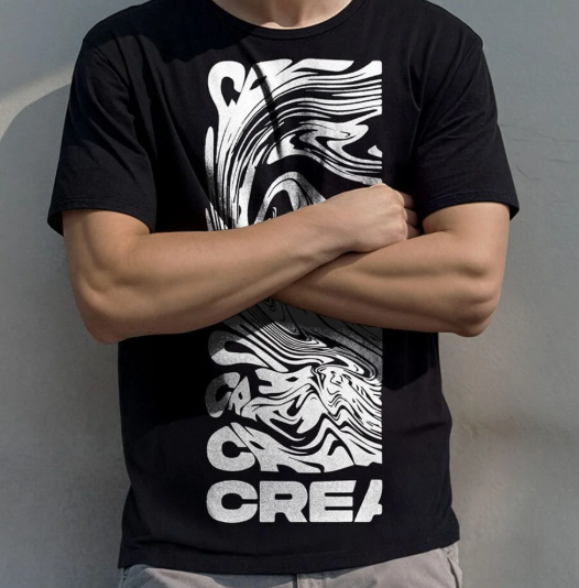 This one is great for dark designs. The black shirt makes your art look strong and clear.