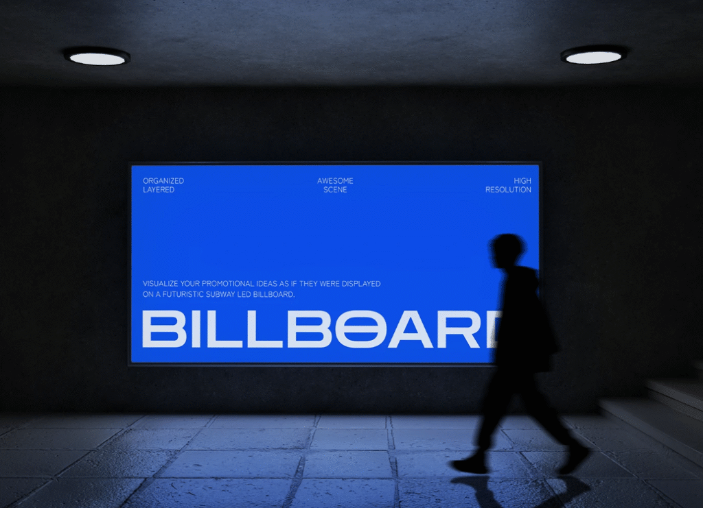 The Subway LED Billboard Mockup offers a realistic and engaging environment to showcase your advertising designs. Featuring special ambient lighting and an inmotion silhouette of a person passing by this mockup adds a sense of movement and urban authenticity making your artwork feel dynamic and lifelike.