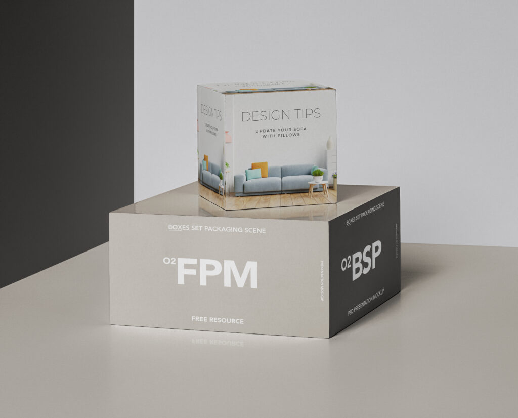 Introducing the Boxes Set PSD Packaging Scene Mockup a clean and professional design resource perfect for showcasing your product packaging ideas in a realistic and elegant way.