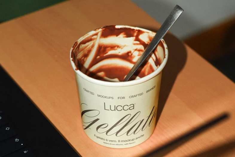 The Gelato Branding Mockup Set presents your design in a beautifully realistic and visually appealing setup. The mockup features a paper gelato cup viewed from an elegant topdown perspective allowing your branding to be displayed clearly and professionally.