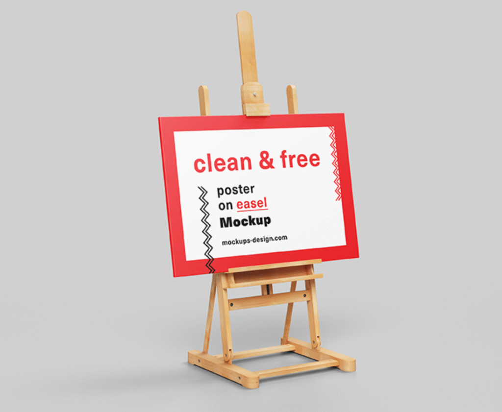 Showcase your poster designs with clarity sophistication and artistic charm using this beautifully crafted Poster on Easel Mockup perfect for