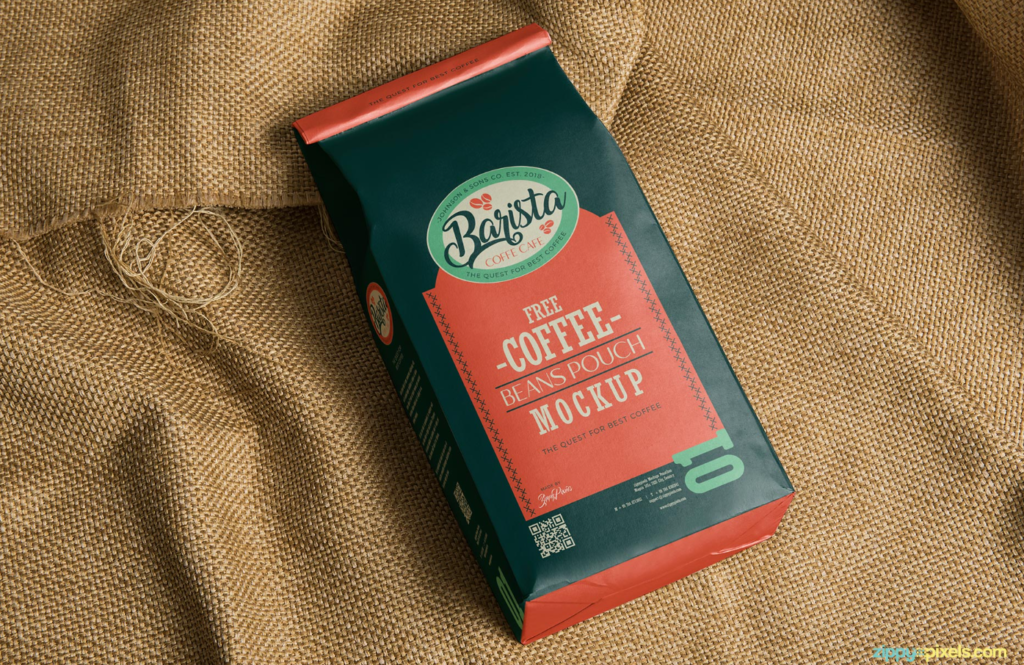 Download this free coffee pouch mockup to enhance your brands visual identity and present your packaging designs with a clean modern and photorealistic display.