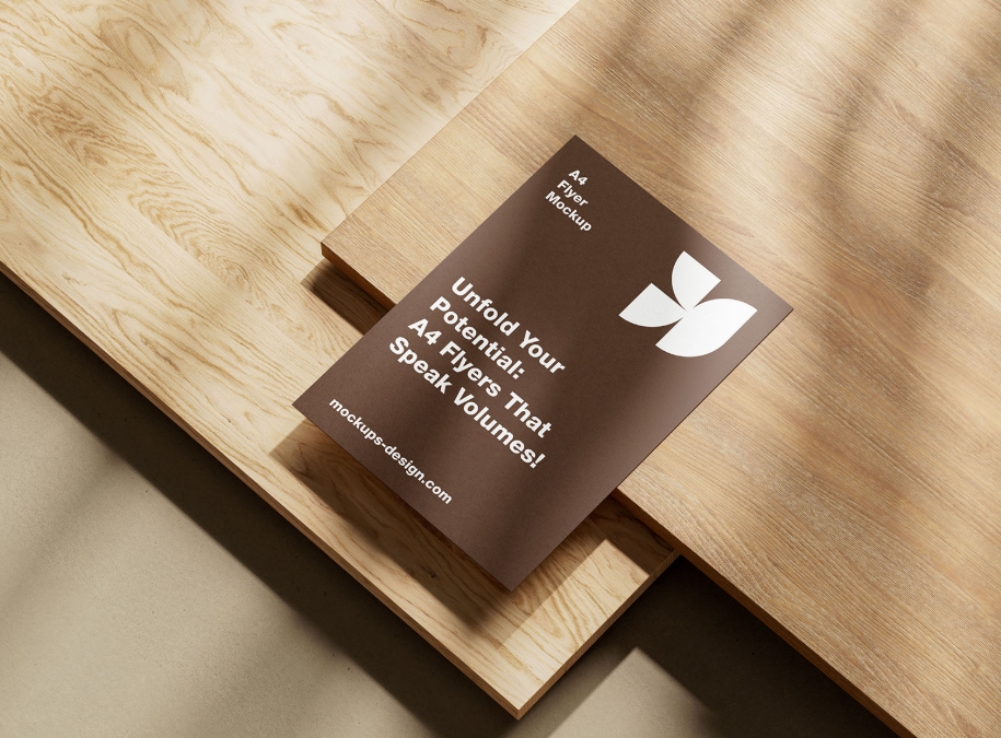 Perfect for portfolios client presentations or social media showcases this mockup allows your designs to shine in a professional context. Whether youre highlighting a single leaflet or integrating your flyer into broader branding materials the A4 Flyer on Wood Mockup ensures a sleek high quality and instantly impressive result.