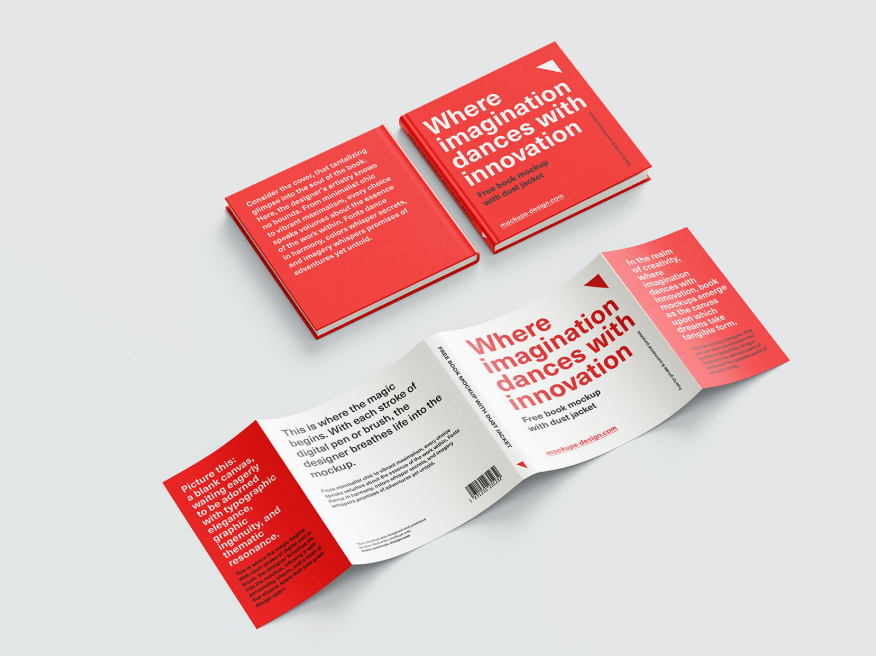 Square Dust Jacket Book Mockup Realistic Hardcover Presentation