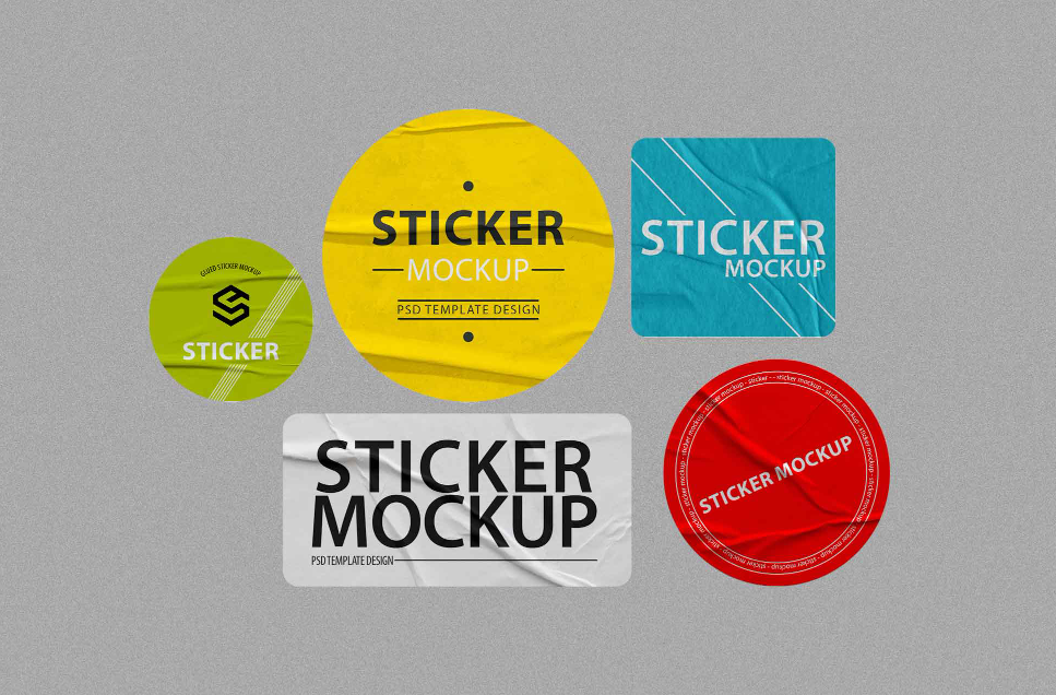 Round Square and Rectangular Designs in a Free Sticker Mockup Collection