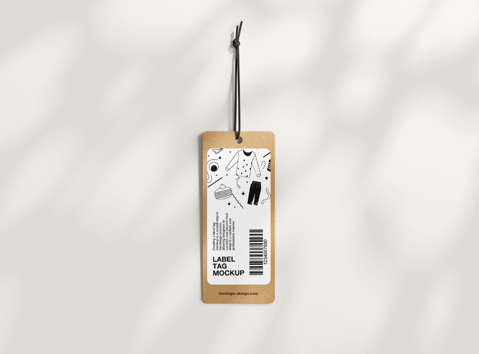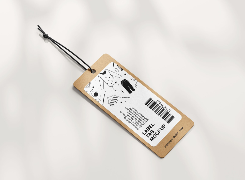 Present your fashion and clothing designs in a professional and realistic way with this free label tag mockup specifically crafted to elevate your branding projects. The mockup features two label designs: a small sticker and a cardboard backing. Both elements are separate layers allowing you to customize each component independently in Photoshop. You can also easily change the color of the string using the designated layer giving you full creative control over the final appearance.