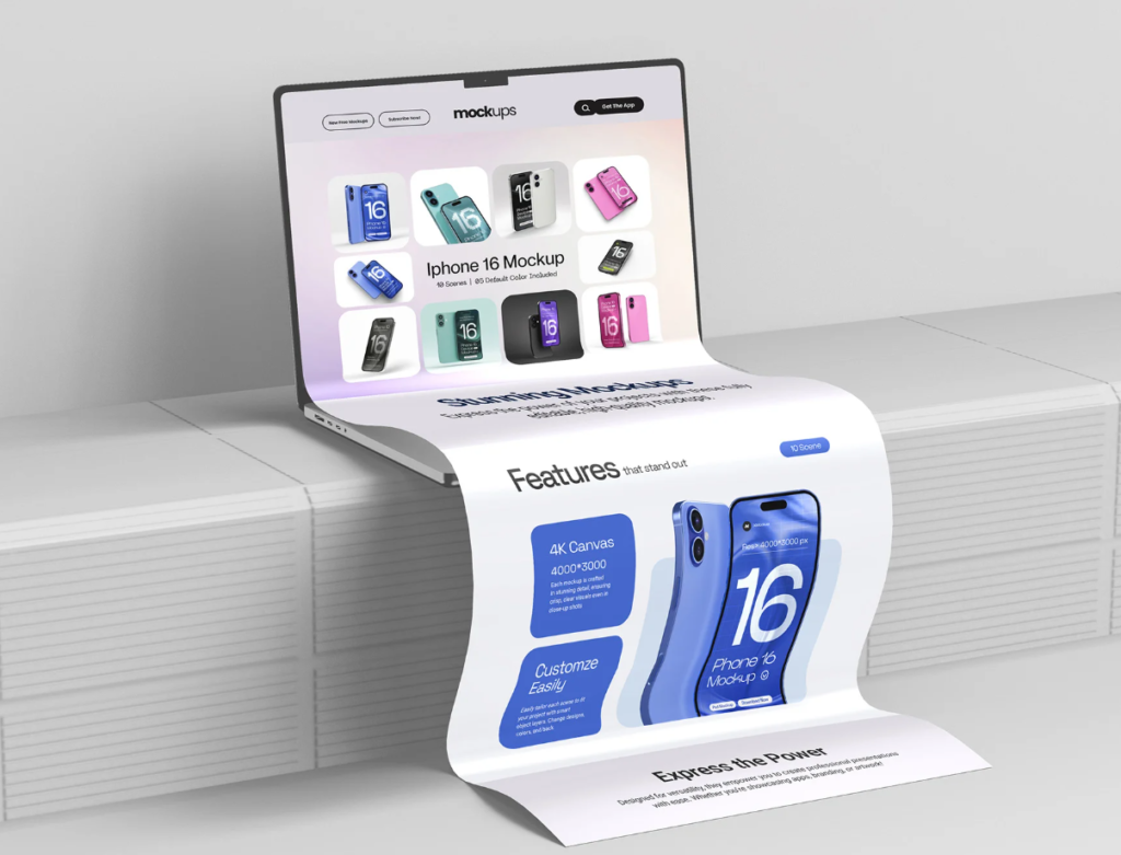 Present your digital designs with style clarity and professionalism using the Long Scroll MacBook Extended Screen Mockup Set. Perfect for UI/UX designers app developers and creative professionals this mockup set provides realistic MacBook screen displays to showcase websites apps or digital artwork in a clean and modern environment. Every scene has been carefully designed to give your presentations a polished lifelike look ensuring your designs take center stage.