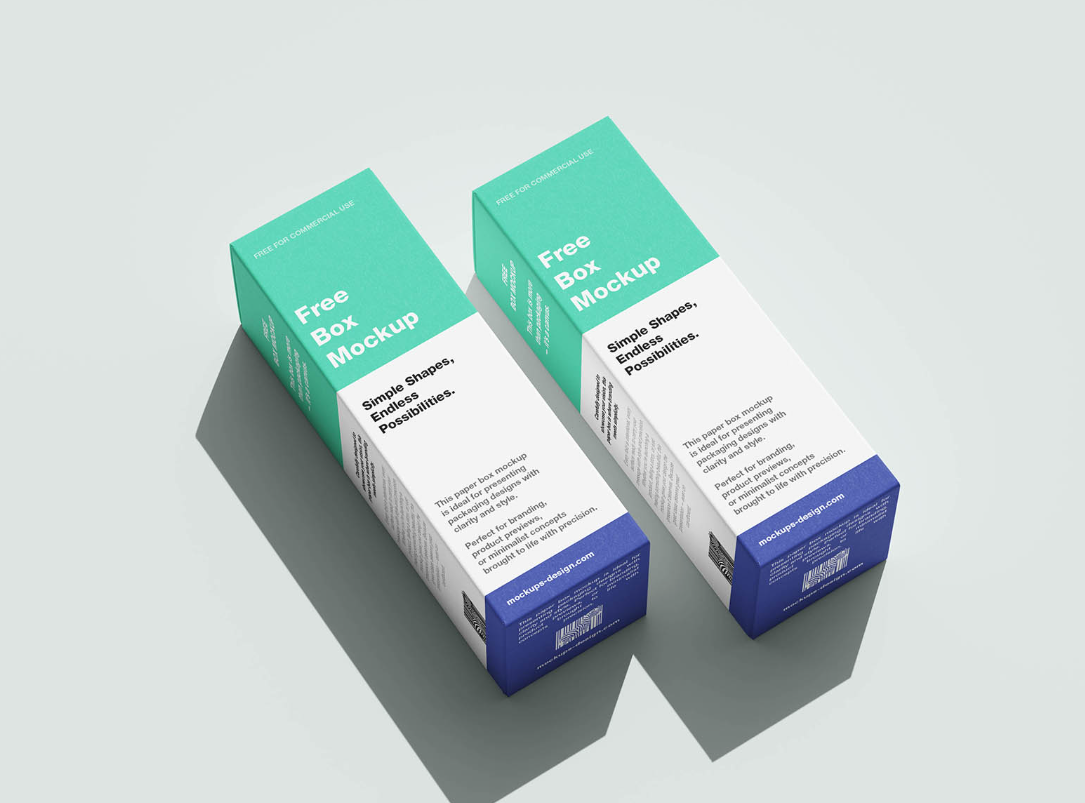Present your packaging concepts with exceptional clarity using this clean minimal and highly versatile mockup set featuring a tall rectangular paper box perfectly suited for cosmetic items pharmaceutical products wellness goods and even compact tech accessories. Designed with precision the box measures 45 × 140 × 45 mm and is displayed across five high resolution fully editable PSD files each capturing the packaging from multiple perspectives including upright for a classic presentation stacked for visual depth flat for a straightforward layout and subtly levitating for a modern dynamic touch. These thoughtfully composed scenes highlight the sleek geometry and balanced proportions of the box ensuring your designs appear crisp and professional whether used in branding proposals portfolio showcases or commercial product imagery.