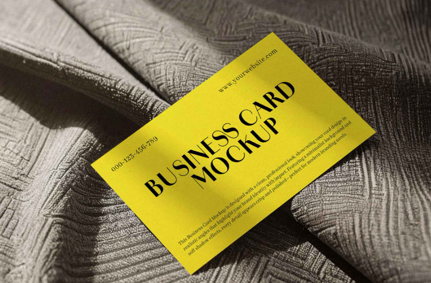 Showcase your business card designs with a touch of sophistication using this Textured Fabric Business Card Mockup. Perfect for designers studios and brands this mockup helps you present your creative ideas to clients in a professional and realistic way.